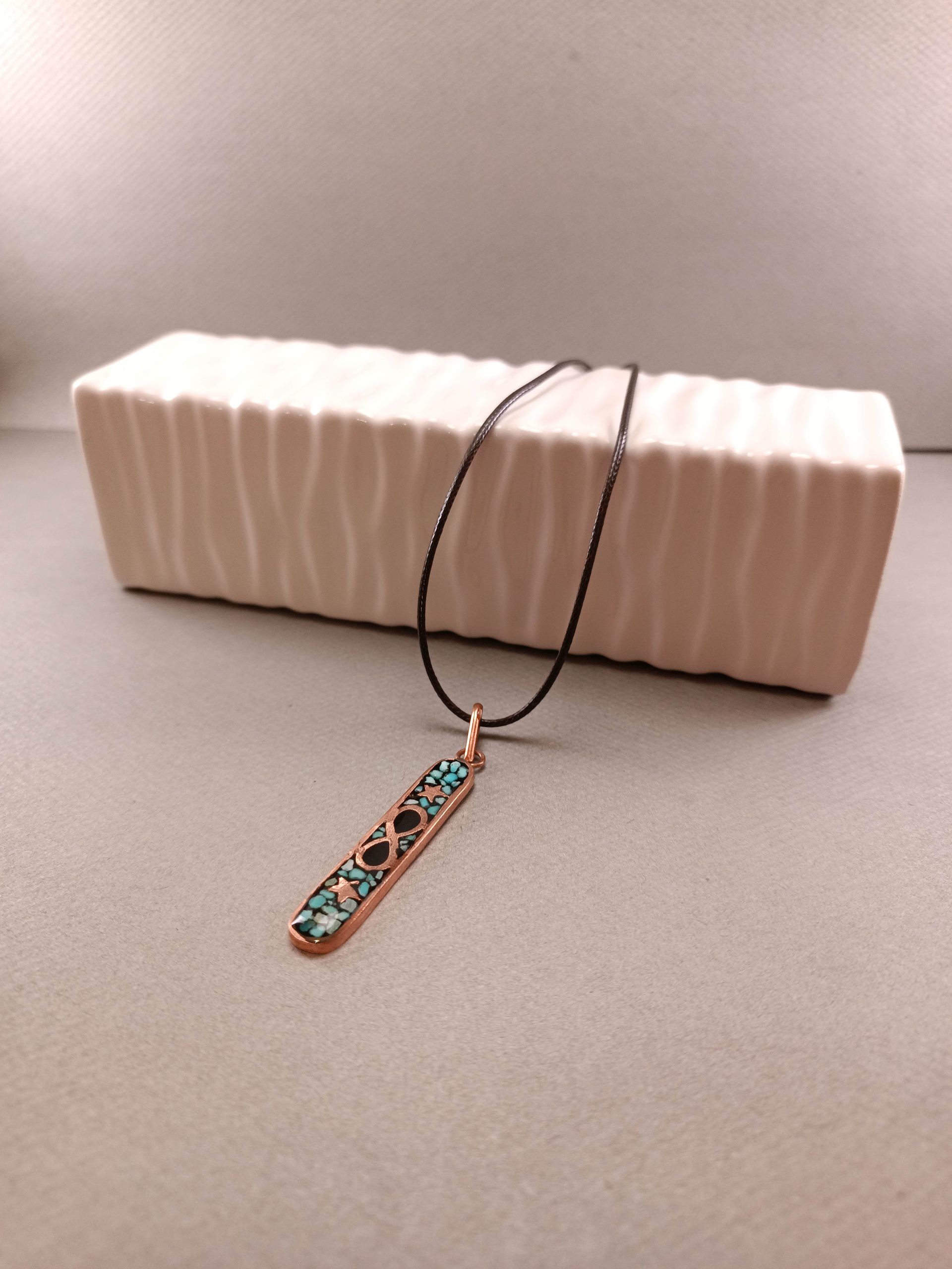 گردنبند مس و فیروزه کوبی بی نهایت – پیوندی از اصالت و زیبایی جاودانه
